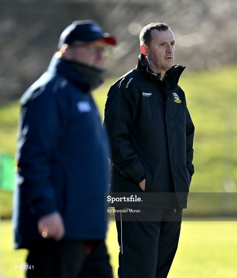 13 March 2022; Meath manager Andy McEntee, right, and Cork manager Keith Ricken during the Allianz Football League Division 2 match between Meath and Cork at Páirc Táilteann in Navan, Meath. Photo by Brendan Moran/Sportsfile