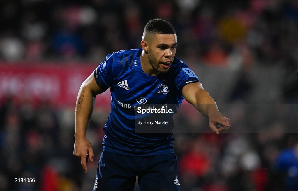 12 March 2022; Adam Byrne of Leinster during the United Rugby Championship match between Ulster and Leinster at Kingspan Stadium in Belfast. Photo by Harry Murphy/Sportsfile