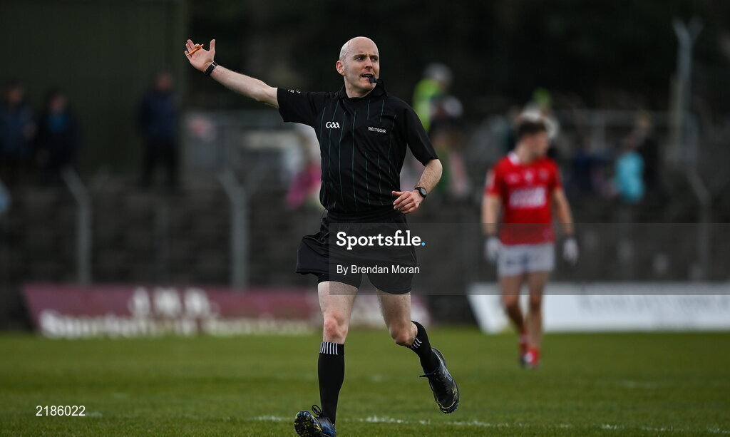 13 March 2022; Referee Liam Devenney during the Allianz Football League Division 2 match between Meath and Cork at Páirc Táilteann in Navan, Meath. Photo by Brendan Moran/Sportsfile