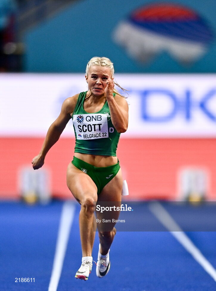 18 March 2022; Molly Scott of Ireland competing in the women's 60m during day one of the World Indoor Athletics Championships at the Štark Arena in Belgrade, Serbia. Photo by Sam Barnes/Sportsfile