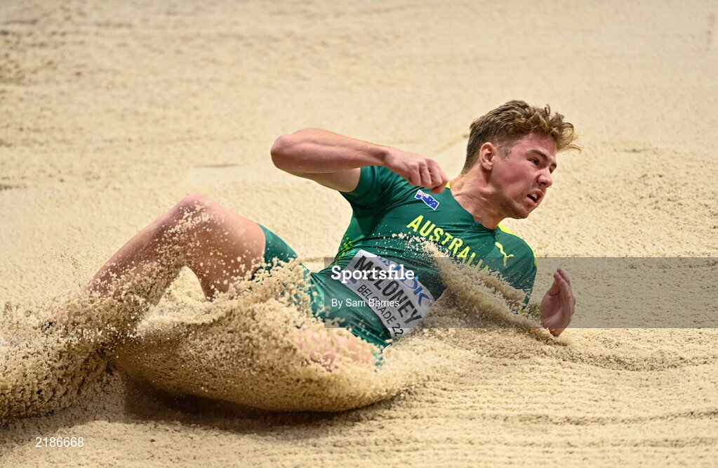 18 March 2022; Ashley Moloney of Australia competing in the long jump of men's heptathlon during day one of the World Indoor Athletics Championships at the Štark Arena in Belgrade, Serbia. Photo by Sam Barnes/Sportsfile