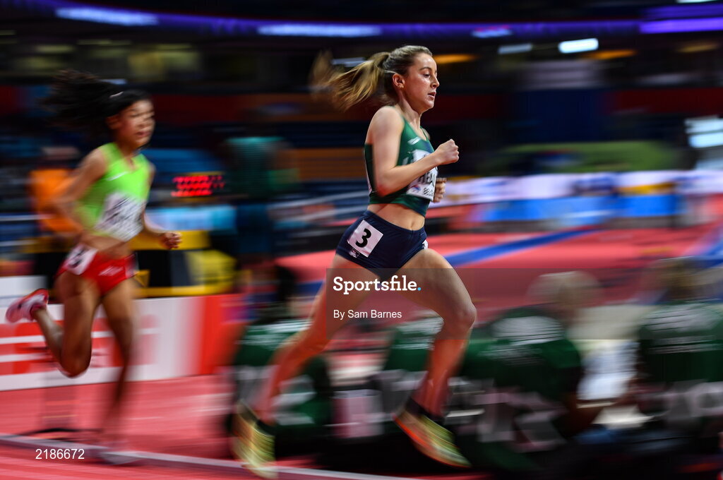 18 March 2022; Sarah Healy of Ireland, competing in the women's 1500m during day one of the World Indoor Athletics Championships at the Štark Arena in Belgrade, Serbia. Photo by Sam Barnes/Sportsfile