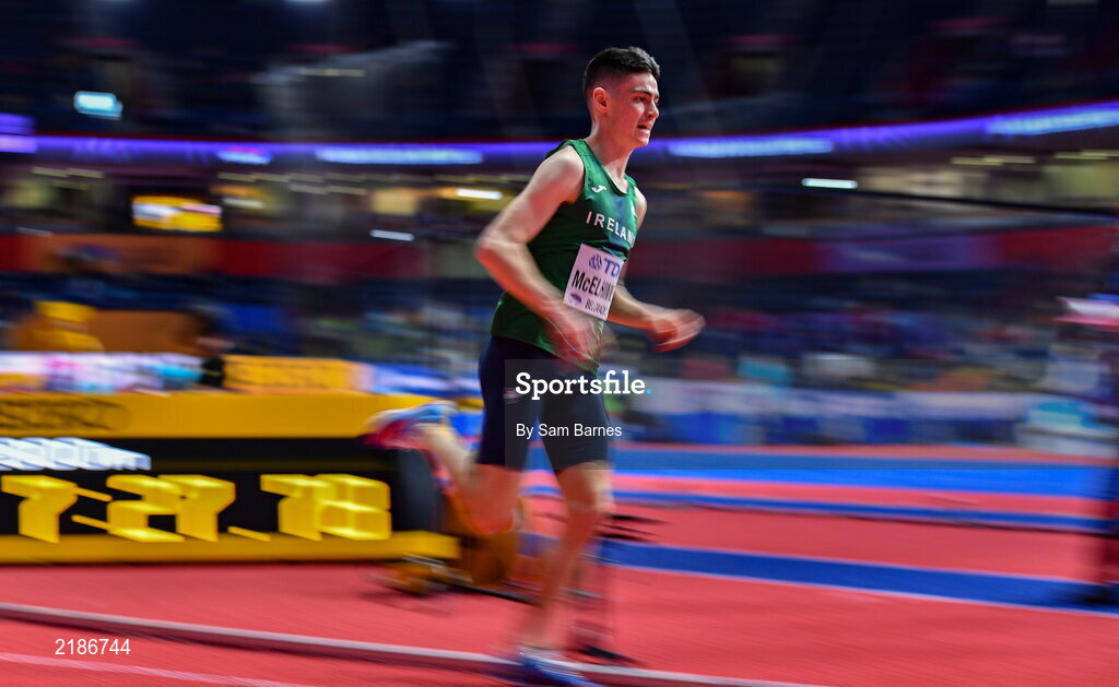 18 March 2022; Darragh McElhinney of Ireland competing in the men's 3000m during day one of the World Indoor Athletics Championships at the Štark Arena in Belgrade, Serbia. Photo by Sam Barnes/Sportsfile