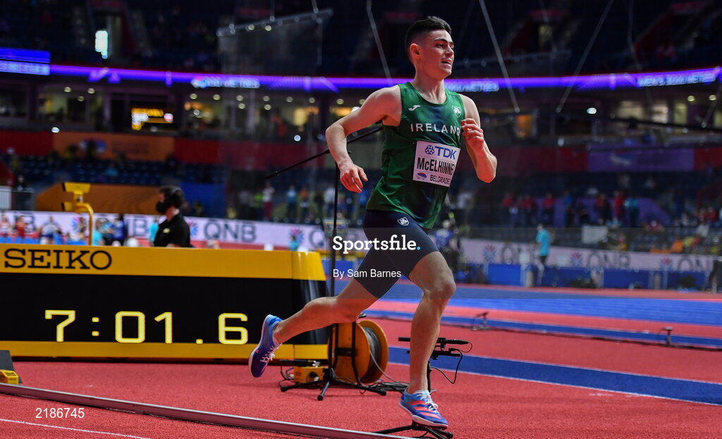 18 March 2022; Darragh McElhinney of Ireland competing in the men's 3000m during day one of the World Indoor Athletics Championships at the Štark Arena in Belgrade, Serbia. Photo by Sam Barnes/Sportsfile