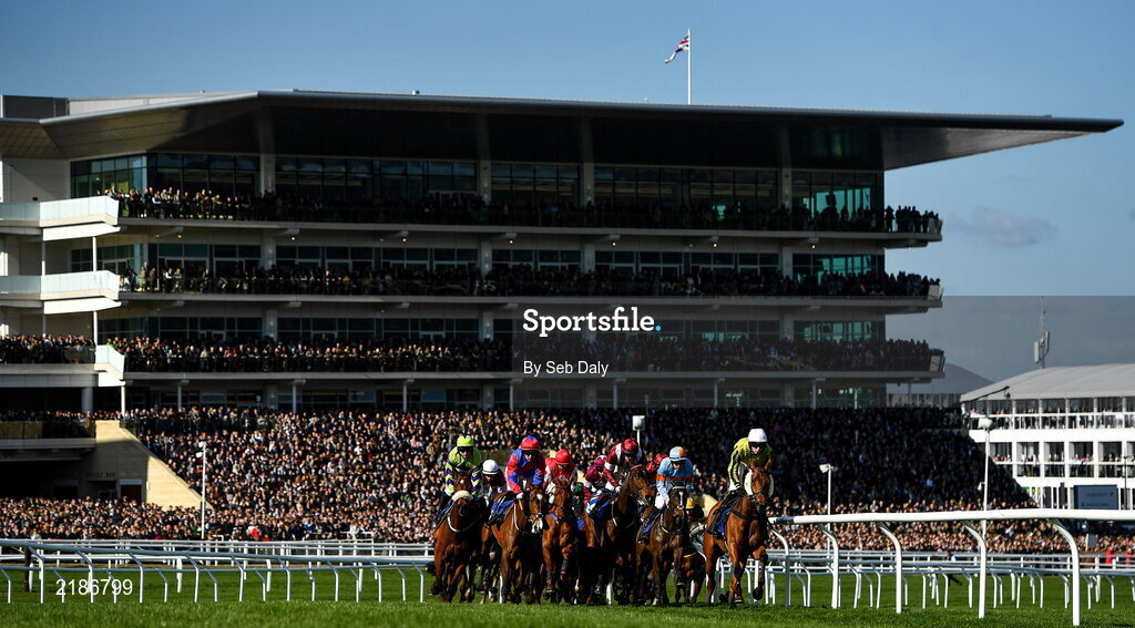 18 March 2022; Runners and riders during the McCoy Contractors County Handicap Hurdle during day four of the Cheltenham Racing Festival at Prestbury Park in Cheltenham, England. Photo by Seb Daly/Sportsfile