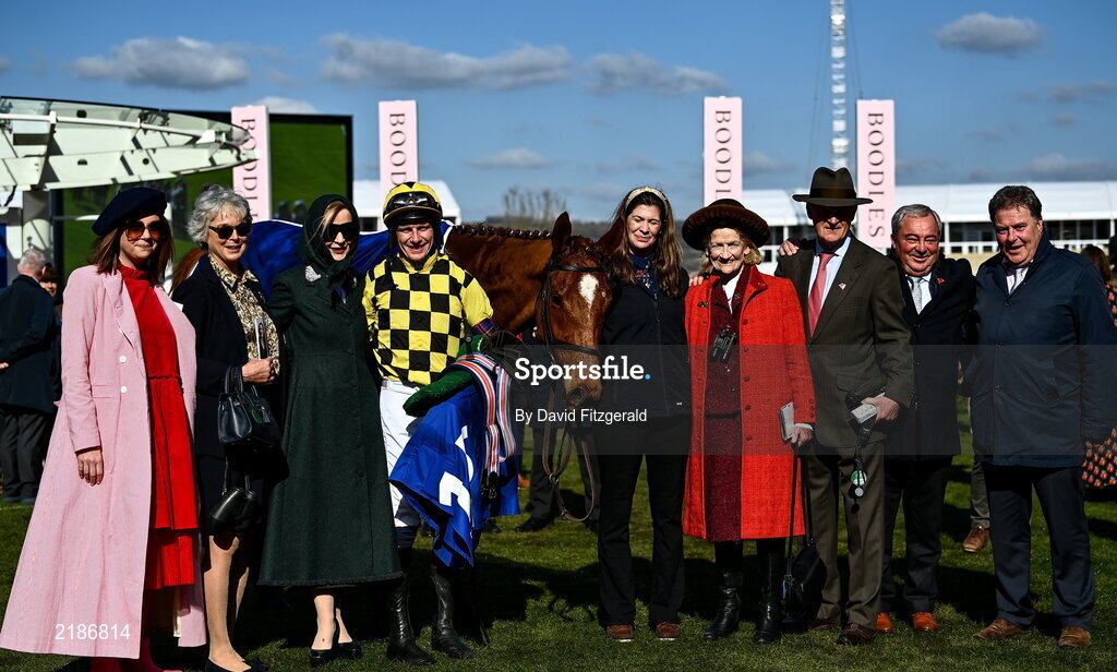 18 March 2022; Jockey Paul Townend and State Man, centre, with winning connections, including trainer Willie Mullins, after winning the McCoy Contractors County Handicap Hurdle during day four of the Cheltenham Racing Festival at Prestbury Park in Cheltenham, England. Photo by David Fitzgerald/Sportsfile