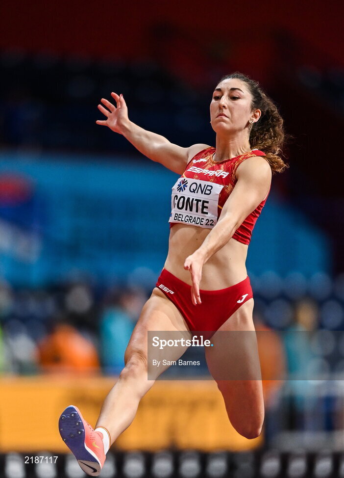 18 March 2022; Claudia Conte of Spain, competing in the long jump of the women's Pentathlon during day one of the World Indoor Athletics Championships at the Štark Arena in Belgrade, Serbia. Photo by Sam Barnes/Sportsfile