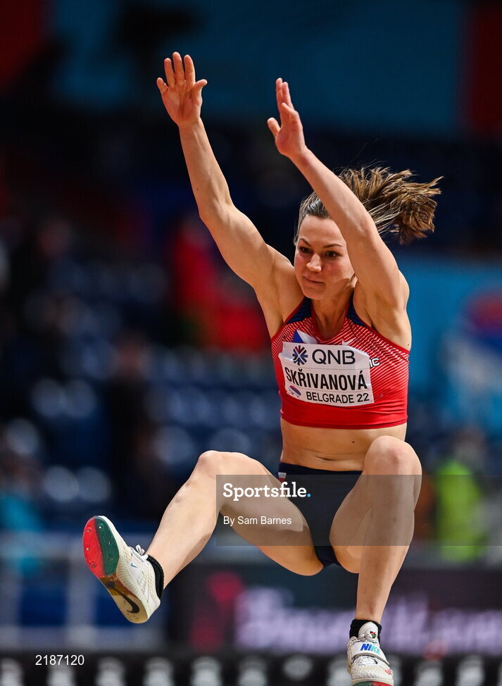 18 March 2022; Dorota Skrivanová of Czech Republic competing in the long jump of the women's Pentathlon during day one of the World Indoor Athletics Championships at the Štark Arena in Belgrade, Serbia. Photo by Sam Barnes/Sportsfile