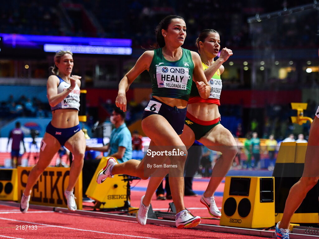 18 March 2022; Phil Healy of Ireland competing in her women's 400m semi-final during day one of the World Indoor Athletics Championships at the Štark Arena in Belgrade, Serbia. Photo by Sam Barnes/Sportsfile