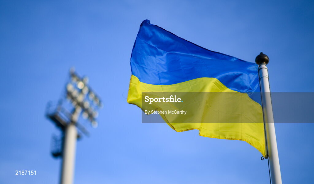 18 March 2022; The flag of Ukraine flies at The Ryan McBride Brandywell Stadium before the SSE Airtricity League Premier Division match between Derry City and St Patrick's Athletic at The Ryan McBride Brandywell Stadium in Derry. Photo by Stephen McCarthy/Sportsfile