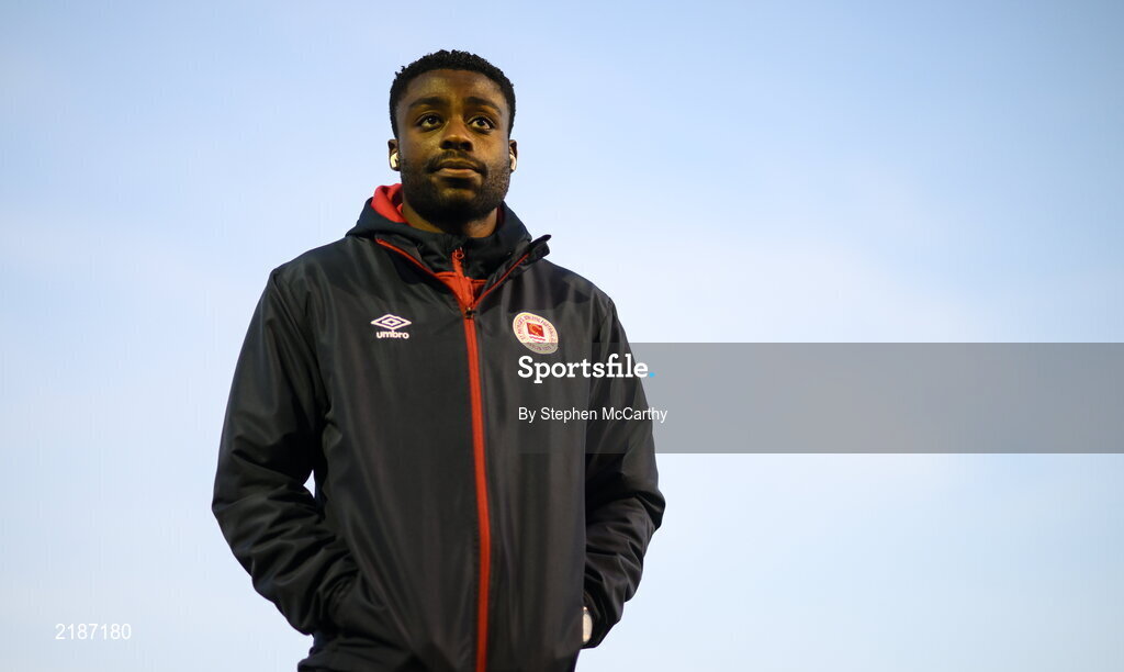 18 March 2022; Tunde Owolabi of St Patrick's Athletic before the SSE Airtricity League Premier Division match between Derry City and St Patrick's Athletic at The Ryan McBride Brandywell Stadium in Derry. Photo by Stephen McCarthy/Sportsfile