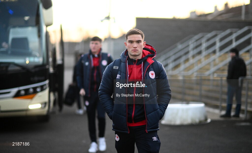 18 March 2022; Anto Breslin of St Patrick's Athletic arrive for the SSE Airtricity League Premier Division match between Derry City and St Patrick's Athletic at The Ryan McBride Brandywell Stadium in Derry. Photo by Stephen McCarthy/Sportsfile