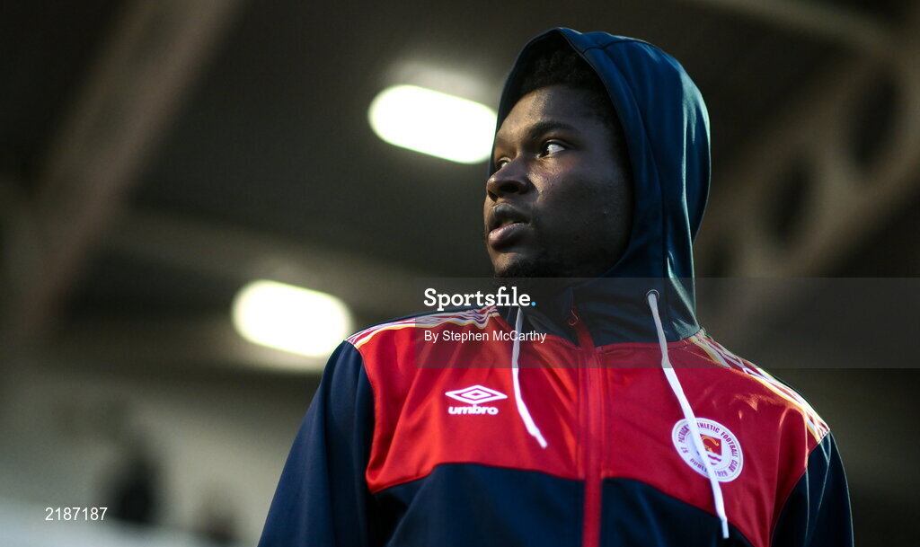 18 March 2022; St Patrick's Athletic goalkeeper Joseph Anang before the SSE Airtricity League Premier Division match between Derry City and St Patrick's Athletic at The Ryan McBride Brandywell Stadium in Derry. Photo by Stephen McCarthy/Sportsfile