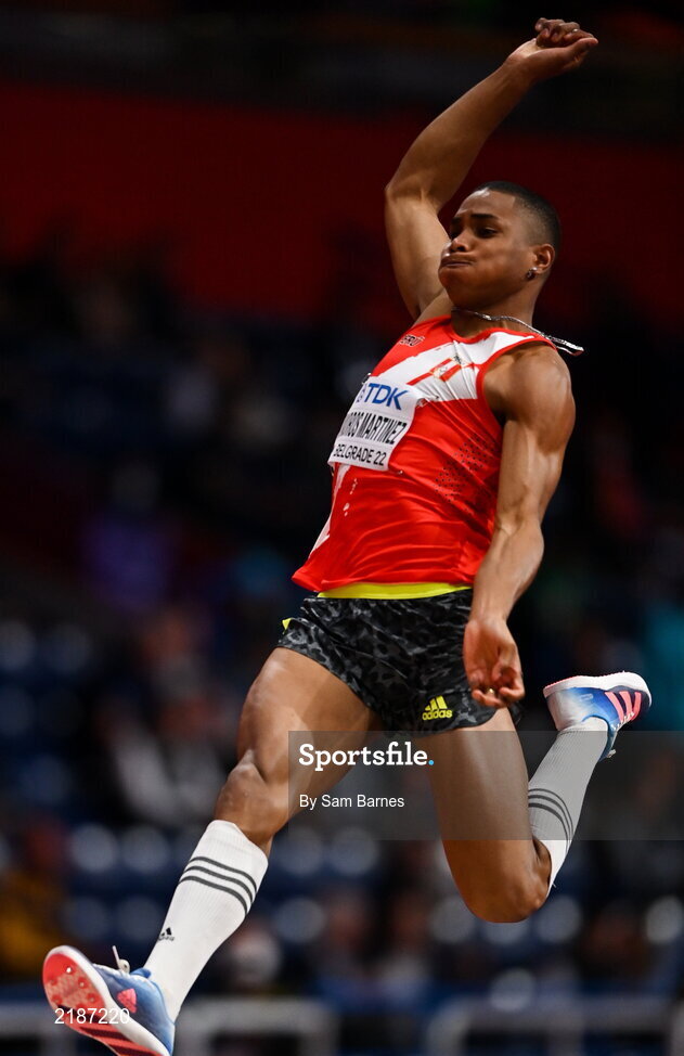 18 March 2022; Jose Mandros Martinez of Peru competing in the men's long jump during day one of the World Indoor Athletics Championships at the Štark Arena in Belgrade, Serbia. Photo by Sam Barnes/Sportsfile