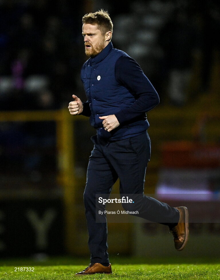 18 March 2022; Shelbourne manager Damien Duff at half-time during the SSE Airtricity League Premier Division match between Shelbourne and Finn Harps at Tolka Park in Dublin. Photo by Piaras Ó Mídheach/Sportsfile