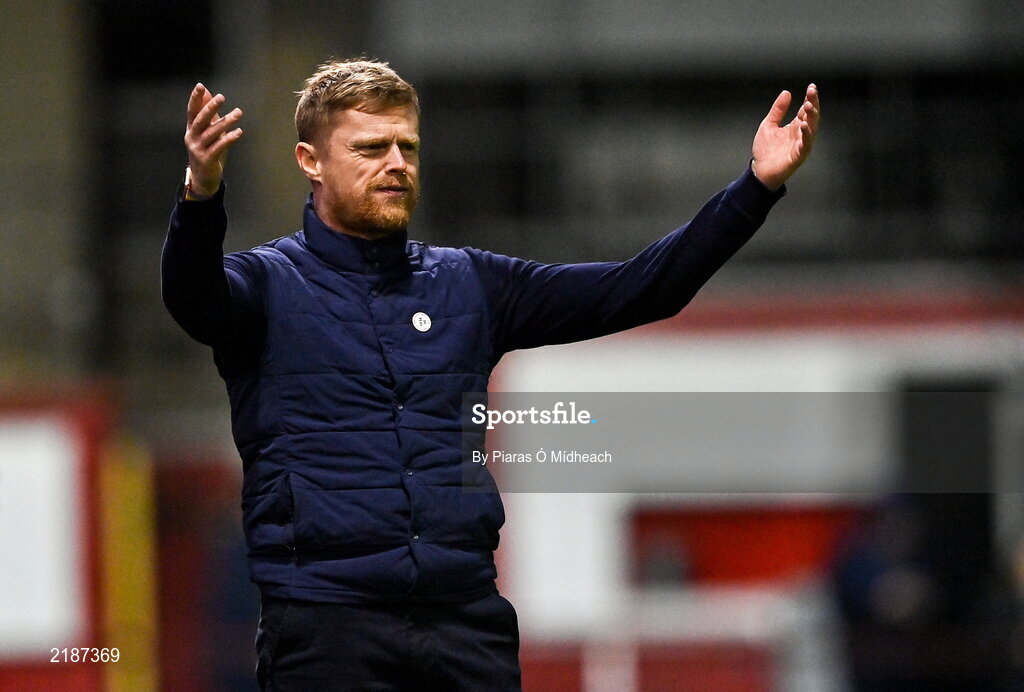 18 March 2022; Shelbourne manager Damien Duff reacts during the SSE Airtricity League Premier Division match between Shelbourne and Finn Harps at Tolka Park in Dublin. Photo by Piaras Ó Mídheach/Sportsfile