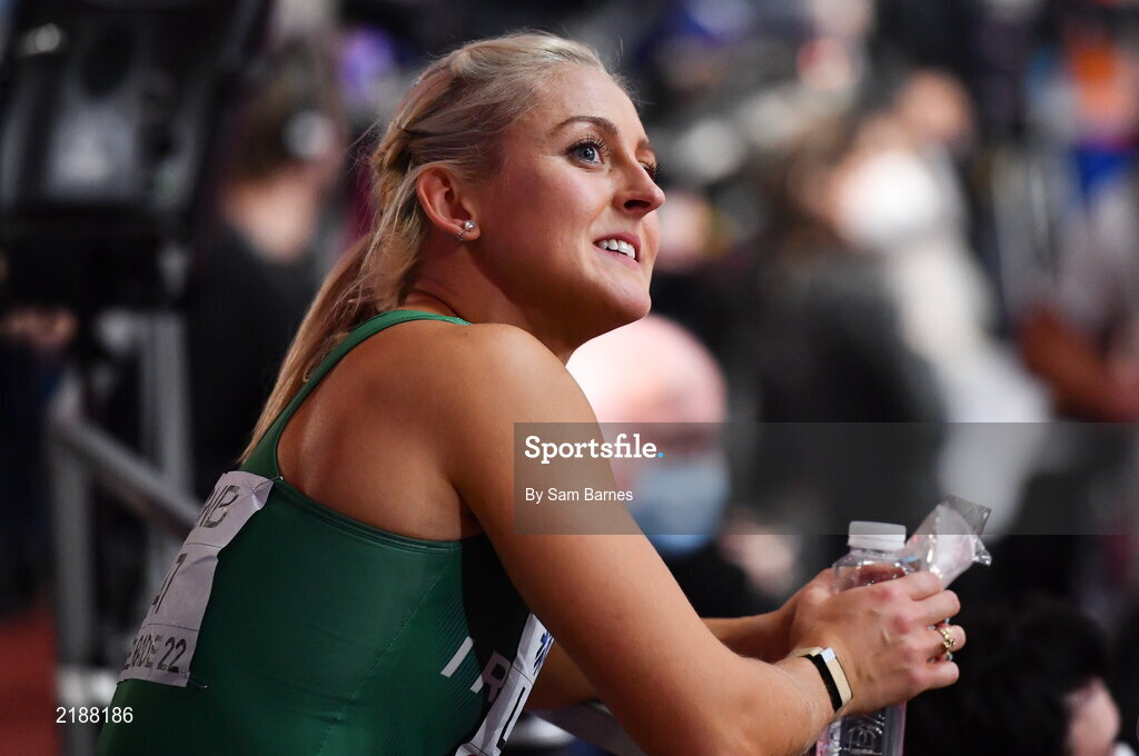 19 March 2022; Sarah Lavin of Ireland after competing in the women's 60m hurdles final during day two of the World Indoor Athletics Championships at the Stark Arena in Belgrade, Serbia. Photo by Sam Barnes/Sportsfile