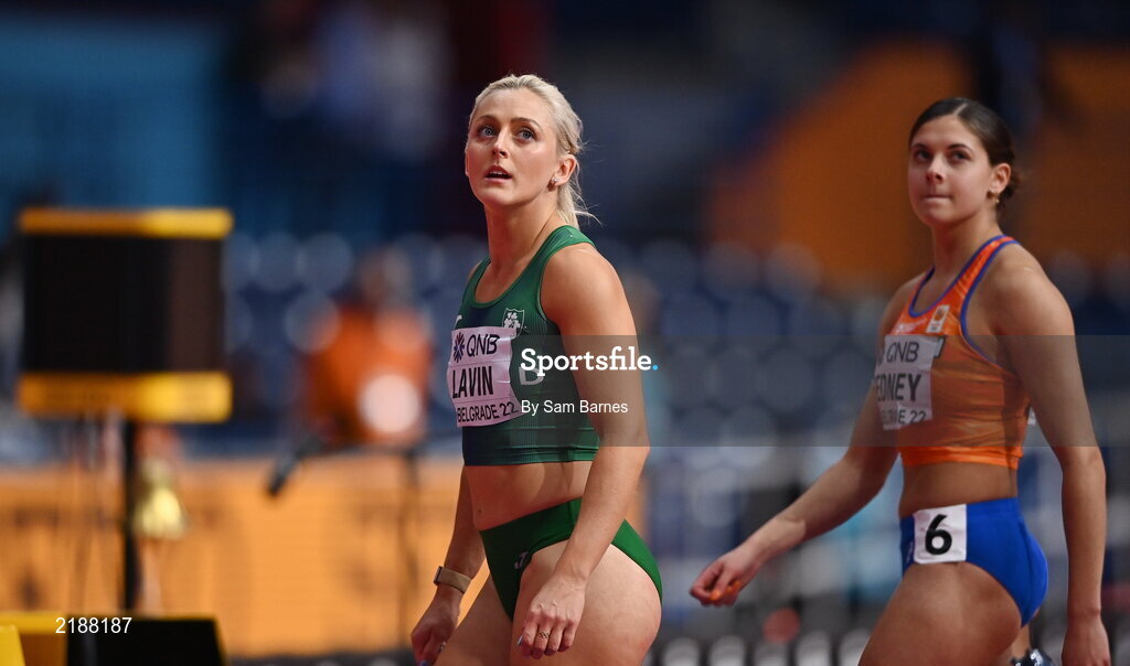 19 March 2022; Sarah Lavin of Ireland after competing in the women's 60m hurdles final during day two of the World Indoor Athletics Championships at the Stark Arena in Belgrade, Serbia. Photo by Sam Barnes/Sportsfile