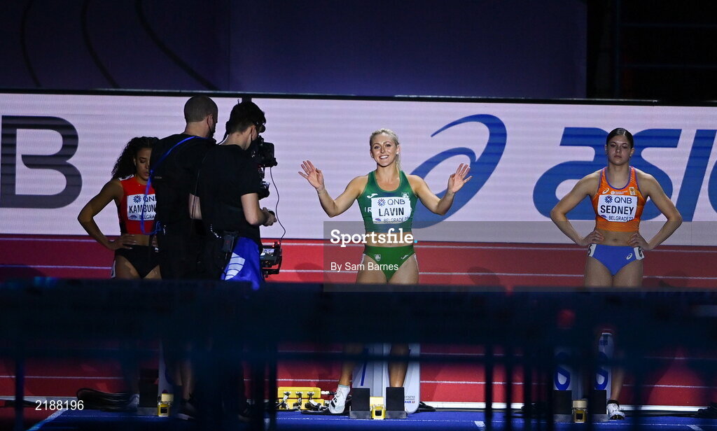 19 March 2022; Sarah Lavin of Ireland before competing in the women's 60m hurdles final during day two of the World Indoor Athletics Championships at the Stark Arena in Belgrade, Serbia. Photo by Sam Barnes/Sportsfile