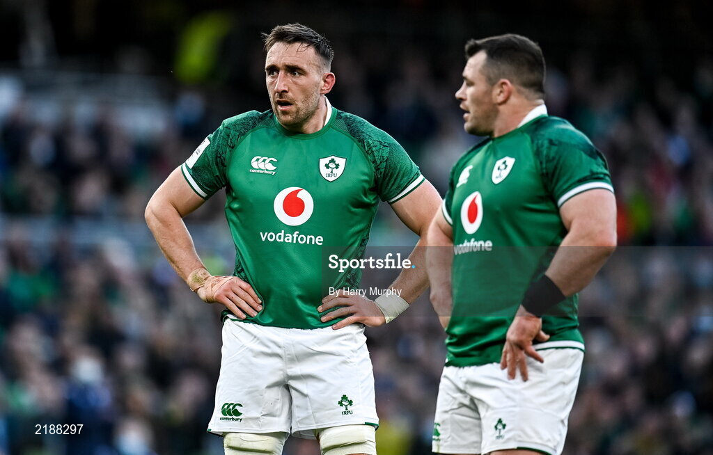 19 March 2022; Jack Conan and Cian Healy of Ireland during the Guinness Six Nations Rugby Championship match between Ireland and Scotland at the Aviva Stadium in Dublin. Photo by Harry Murphy/Sportsfile