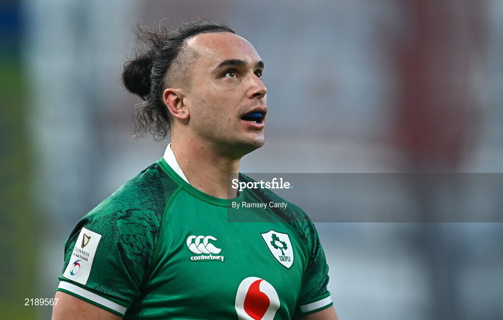 19 March 2022; James Lowe of Ireland during the Guinness Six Nations Rugby Championship match between Ireland and Scotland at Aviva Stadium in Dublin. Photo by Ramsey Cardy/Sportsfile
