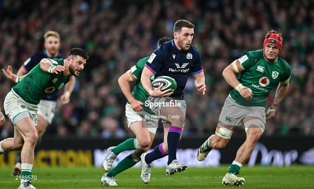 19 March 2022; Mark Bennett of Scotland during the Guinness Six Nations Rugby Championship match between Ireland and Scotland at Aviva Stadium in Dublin. Photo by Ramsey Cardy/Sportsfile
