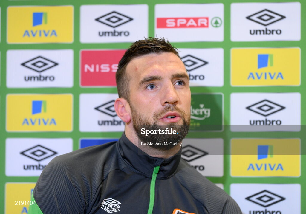 24 March 2022; Shane Duffy during a Republic of Ireland press conference at FAI Headquarters in Abbotstown, Dublin. Photo by Stephen McCarthy/Sportsfile