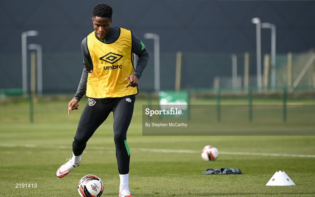 24 March 2022; Chiedozie Ogbene during a Republic of Ireland training session at the FAI National Training Centre in Abbotstown, Dublin. Photo by Stephen McCarthy/Sportsfile