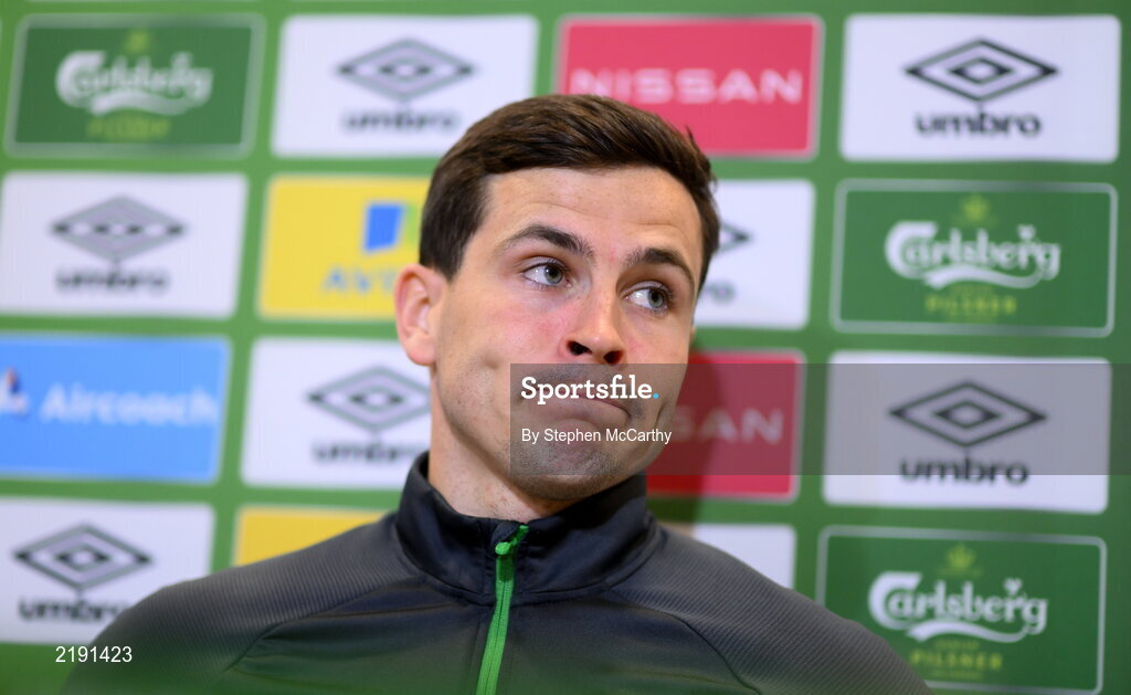 24 March 2022; Josh Cullen during a Republic of Ireland press conference at FAI Headquarters in Abbotstown, Dublin. Photo by Stephen McCarthy/Sportsfile