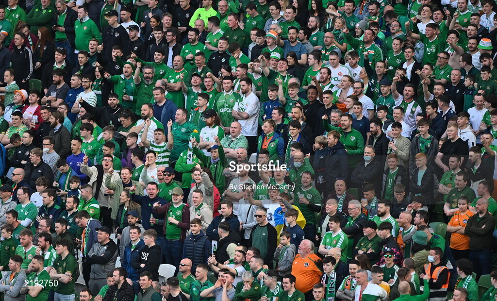 26 March 2022; Republic of Ireland supporters during the international friendly match between Republic of Ireland and Belgium at the Aviva Stadium in Dublin. Photo by Stephen McCarthy/Sportsfile