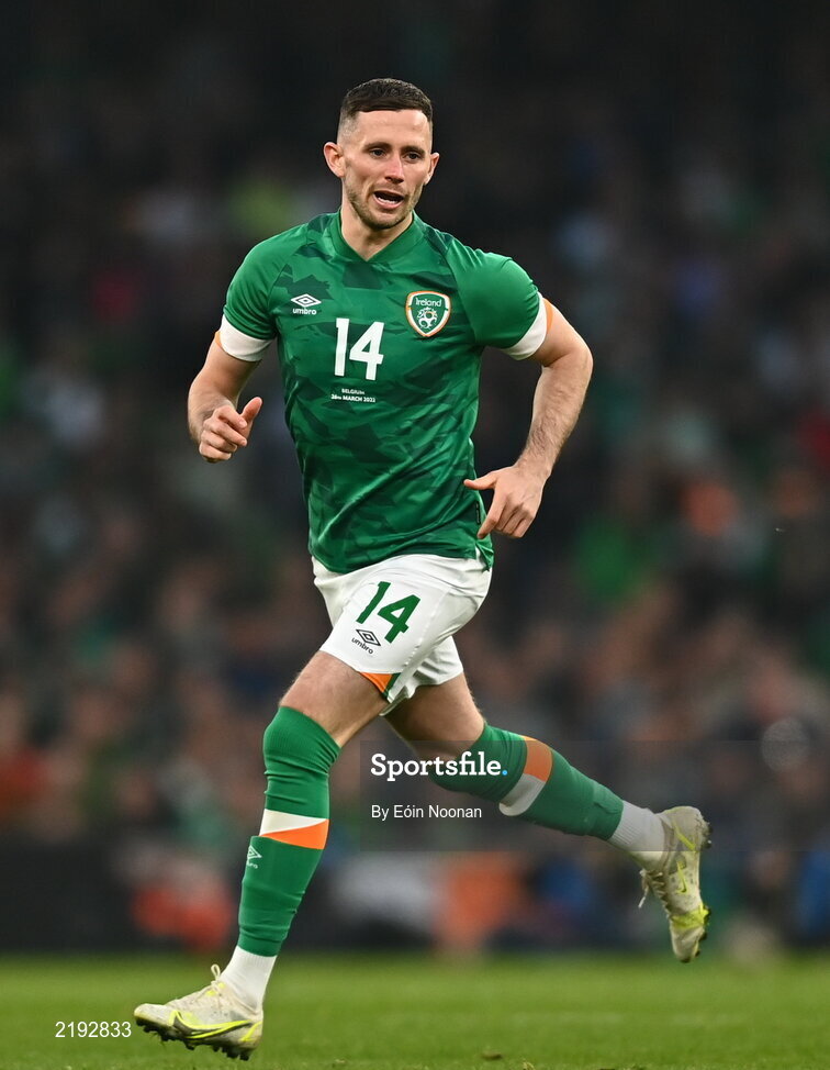 26 March 2022; Alan Browne of Republic of Ireland during the international friendly match between Republic of Ireland and Belgium at the Aviva Stadium in Dublin. Photo by Eóin Noonan/Sportsfile