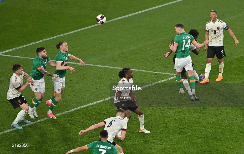26 March 2022; Alan Browne of Republic of Ireland scores his side's second goal during the international friendly match between Republic of Ireland and Belgium at the Aviva Stadium in Dublin. Photo by Seb Daly/Sportsfile