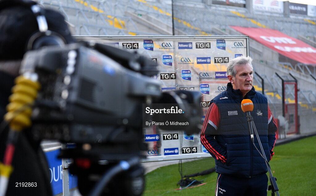 26 March 2022; Cork manager Kieran Kingston is interviewed by TG4 before the Allianz Hurling League Division 1 Semi-Final match between Cork and Kilkenny at Páirc Ui Chaoimh in Cork. Photo by Piaras Ó Mídheach/Sportsfile