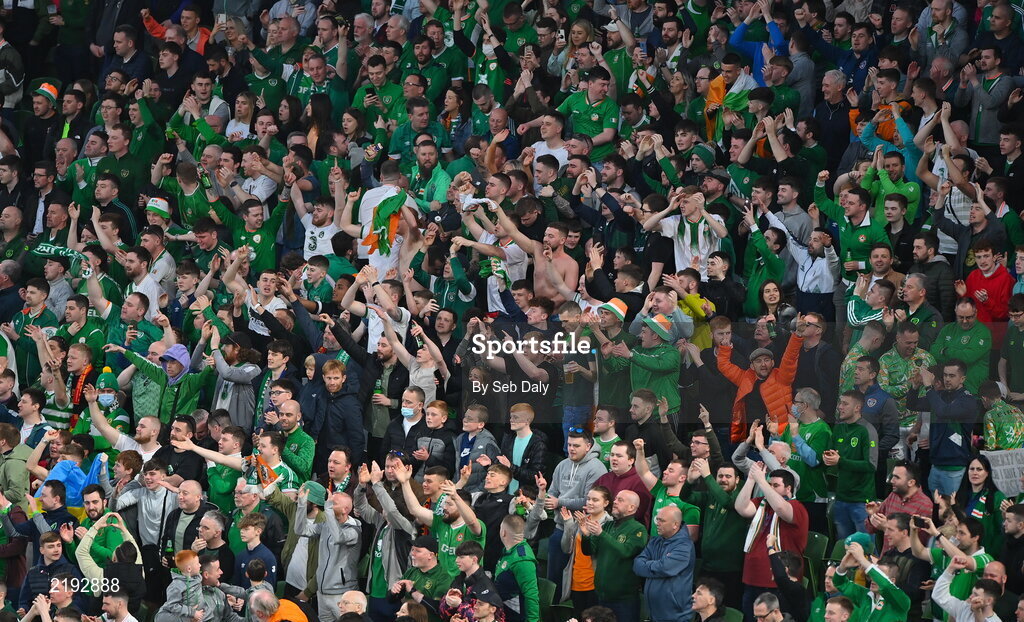 26 March 2022; Republic of Ireland supporters during the international friendly match between Republic of Ireland and Belgium at the Aviva Stadium in Dublin. Photo by Seb Daly/Sportsfile