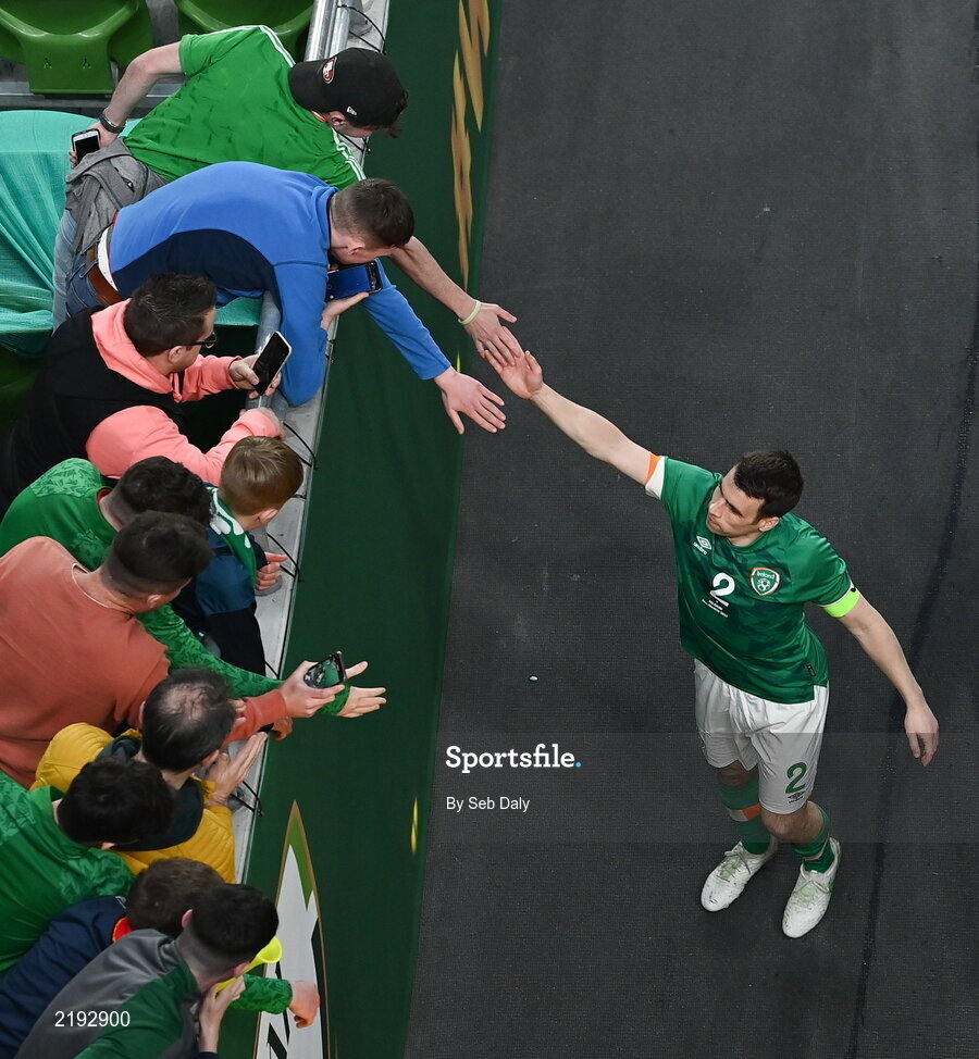 26 March 2022; Seamus Coleman of Republic of Ireland after the international friendly match between Republic of Ireland and Belgium at the Aviva Stadium in Dublin. Photo by Seb Daly/Sportsfile