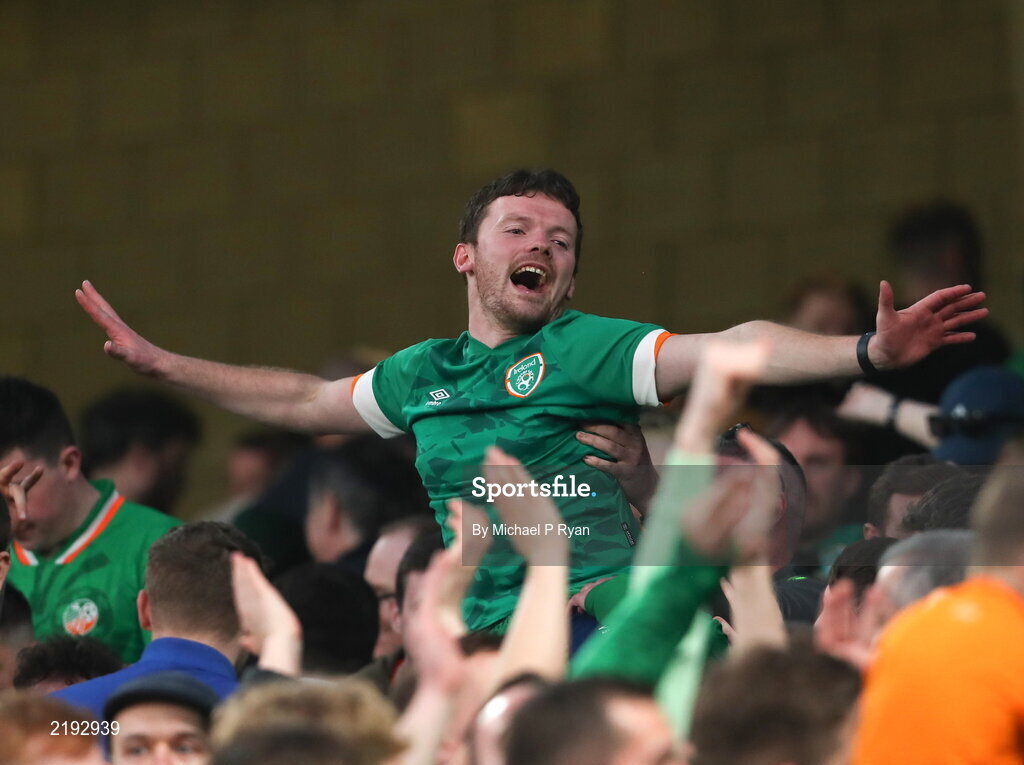 26 March 2022; A Republic of Ireland supporter during the international friendly match between Republic of Ireland and Belgium at the Aviva Stadium in Dublin. Photo by Michael P Ryan/Sportsfile