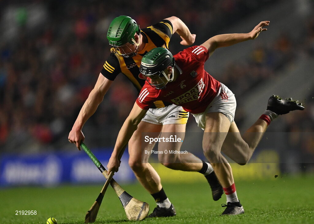 26 March 2022; Mark Coleman of Cork in action against Martin Keoghan of Kilkenny during the Allianz Hurling League Division 1 Semi-Final match between Cork and Kilkenny at Páirc Ui Chaoimh in Cork. Photo by Piaras Ó Mídheach/Sportsfile