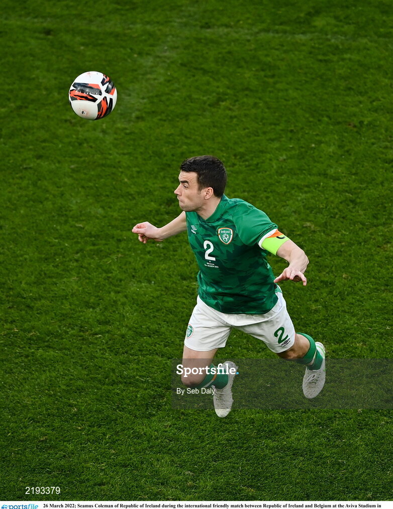 26 March 2022; Seamus Coleman of Republic of Ireland during the international friendly match between Republic of Ireland and Belgium at the Aviva Stadium in Dublin. Photo by Seb Daly/Sportsfile