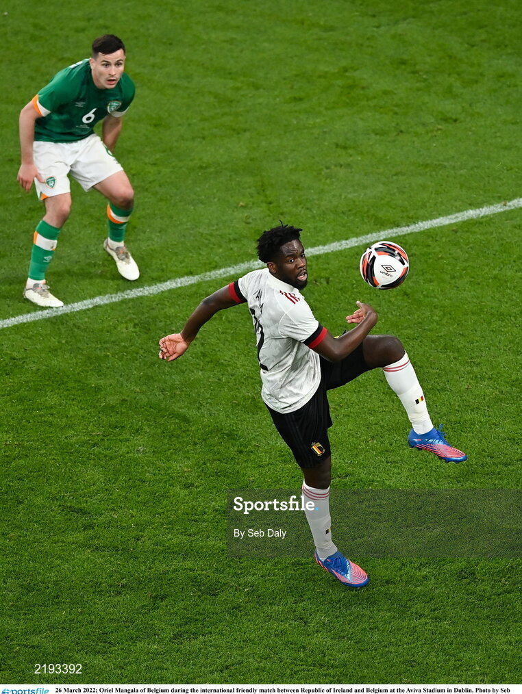 26 March 2022; Oriel Mangala of Belgium during the international friendly match between Republic of Ireland and Belgium at the Aviva Stadium in Dublin. Photo by Seb Daly/Sportsfile