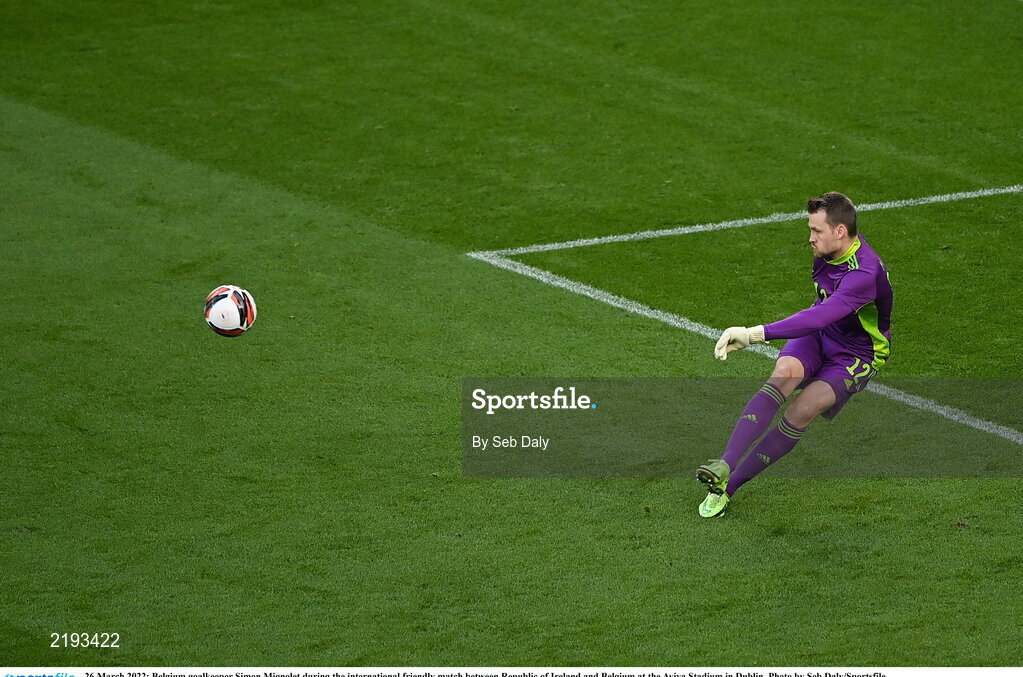 26 March 2022; Belgium goalkeeper Simon Mignolet during the international friendly match between Republic of Ireland and Belgium at the Aviva Stadium in Dublin. Photo by Seb Daly/Sportsfile