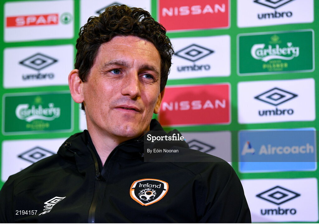 28 March 2022; Coach Keith Andrews during a Republic of Ireland press conference at FAI Headquarters in Dublin. Photo by Eóin Noonan/Sportsfile