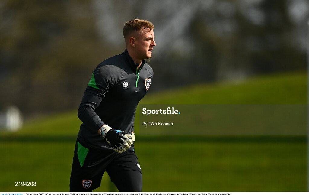 28 March 2022; Goalkeeper James Talbot during a Republic of Ireland training session at FAI National Training Centre in Dublin. Photo by Eóin Noonan/Sportsfile