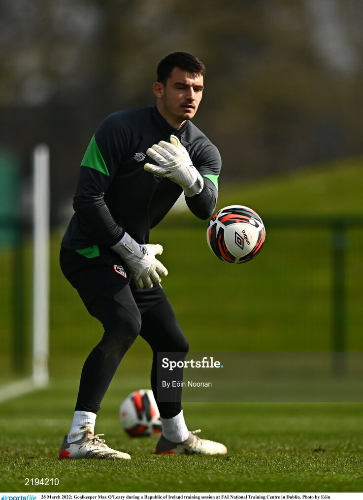 28 March 2022; Goalkeeper Max O'Leary during a Republic of Ireland training session at FAI National Training Centre in Dublin. Photo by Eóin Noonan/Sportsfile