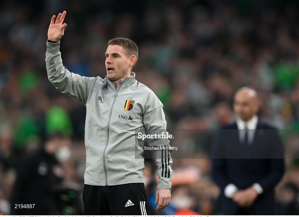26 March 2022; Belgium coach Anthony Barry during the international friendly match between Republic of Ireland and Belgium at the Aviva Stadium in Dublin. Photo by Stephen McCarthy/Sportsfile