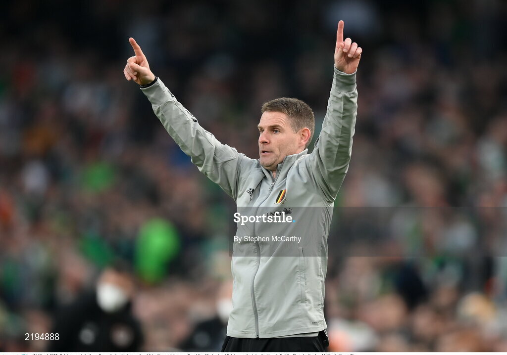 26 March 2022; Belgium coach Anthony Barry during the international friendly match between Republic of Ireland and Belgium at the Aviva Stadium in Dublin. Photo by Stephen McCarthy/Sportsfile