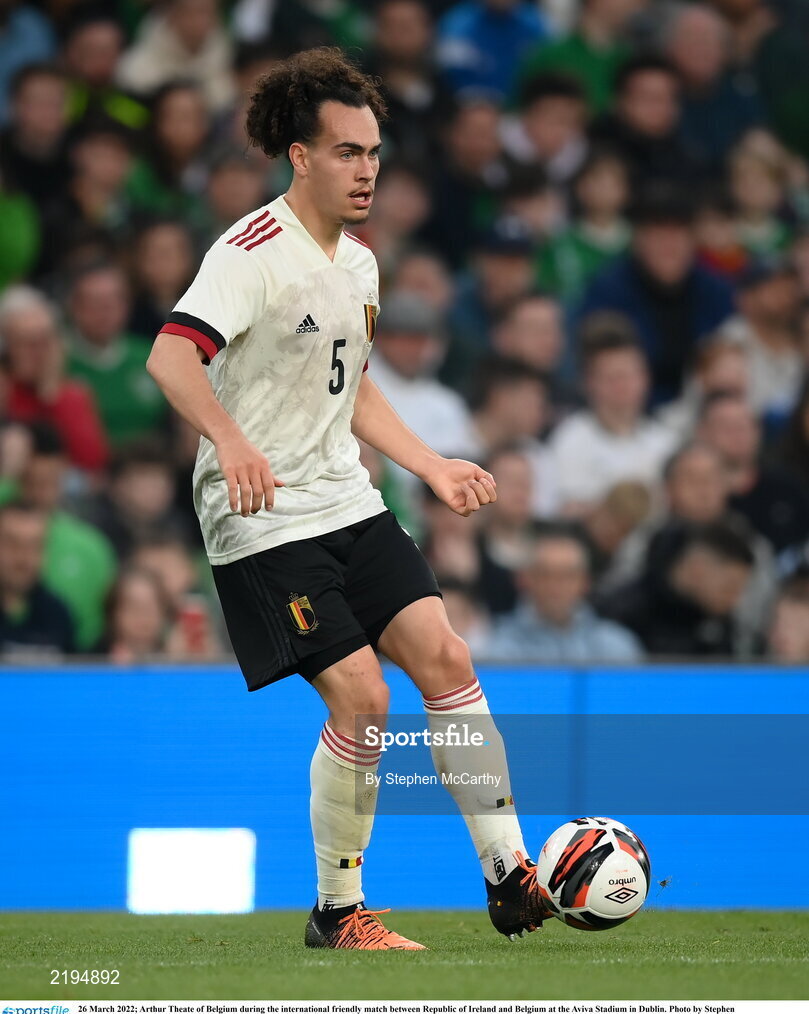 26 March 2022; Arthur Theate of Belgium during the international friendly match between Republic of Ireland and Belgium at the Aviva Stadium in Dublin. Photo by Stephen McCarthy/Sportsfile