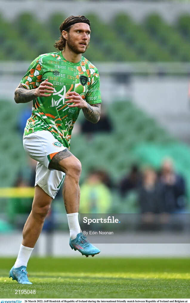 26 March 2022; Jeff Hendrick of Republic of Ireland during the international friendly match between Republic of Ireland and Belgium at the Aviva Stadium in Dublin. Photo by Eóin Noonan/Sportsfile