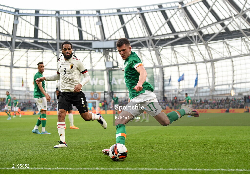 26 March 2022; Jason Knight of Republic of Ireland during the international friendly match between Republic of Ireland and Belgium at the Aviva Stadium in Dublin. Photo by Eóin Noonan/Sportsfile