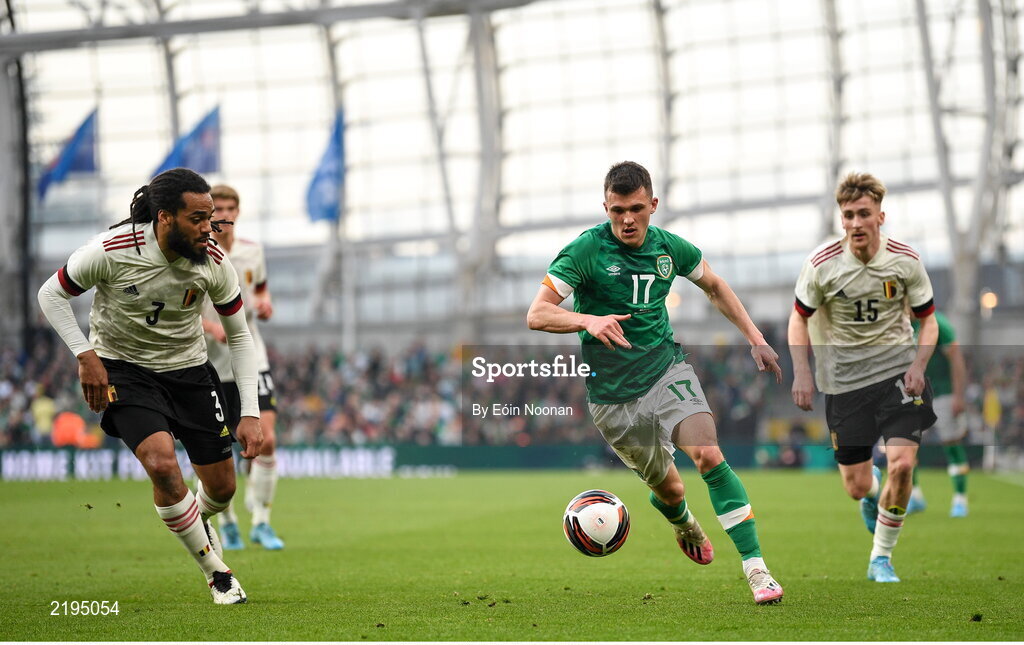 26 March 2022; Jason Knight of Republic of Ireland during the international friendly match between Republic of Ireland and Belgium at the Aviva Stadium in Dublin. Photo by Eóin Noonan/Sportsfile