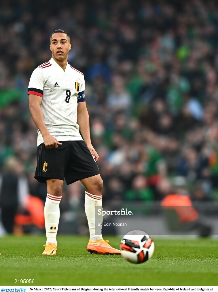 26 March 2022; Youri Tielemans of Belgium during the international friendly match between Republic of Ireland and Belgium at the Aviva Stadium in Dublin. Photo by Eóin Noonan/Sportsfile